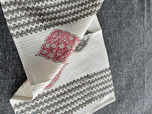 Sandalwood Mist Handblock Cotton Waffle Bath Towe Set ( 1 Bath Towel + 2 Hand Towel)