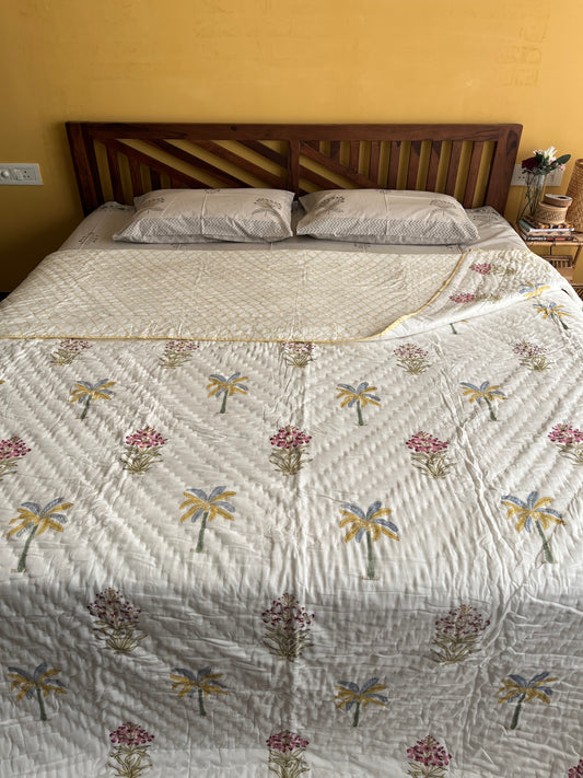 Multicolour Palm Handblock Double Bed Quilt (90”*108”)
