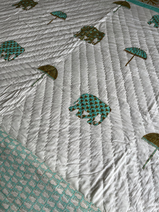 Multicolour Elephant Double Bed Quilt