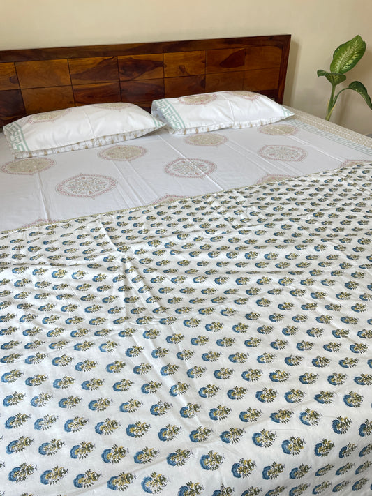 Mughal Garden Soft Mulmul Cotton Screen Printed Double Bed Dohars