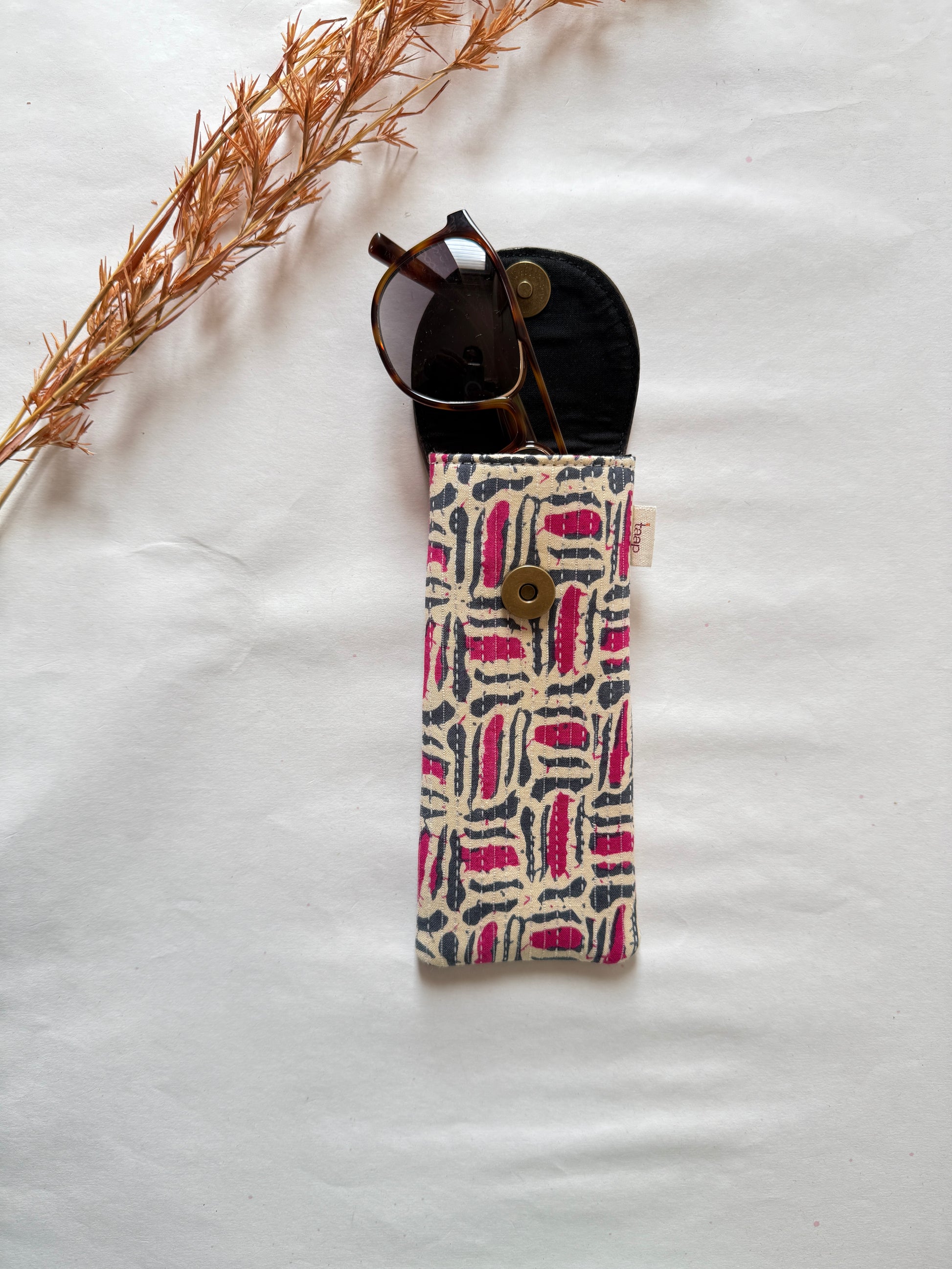 > Crafted in colorful or earthy cotton prints, making even a sunglass cover a style