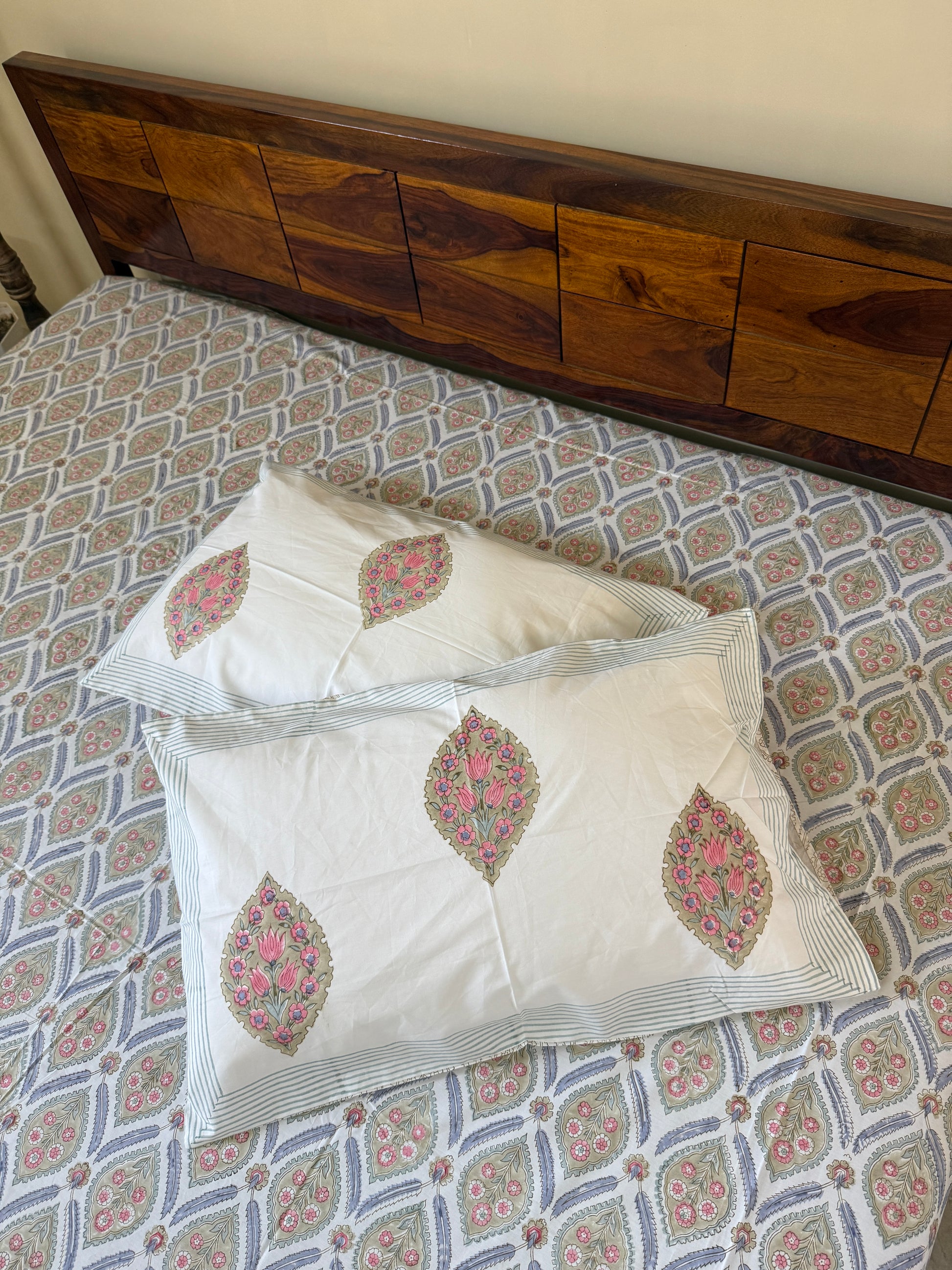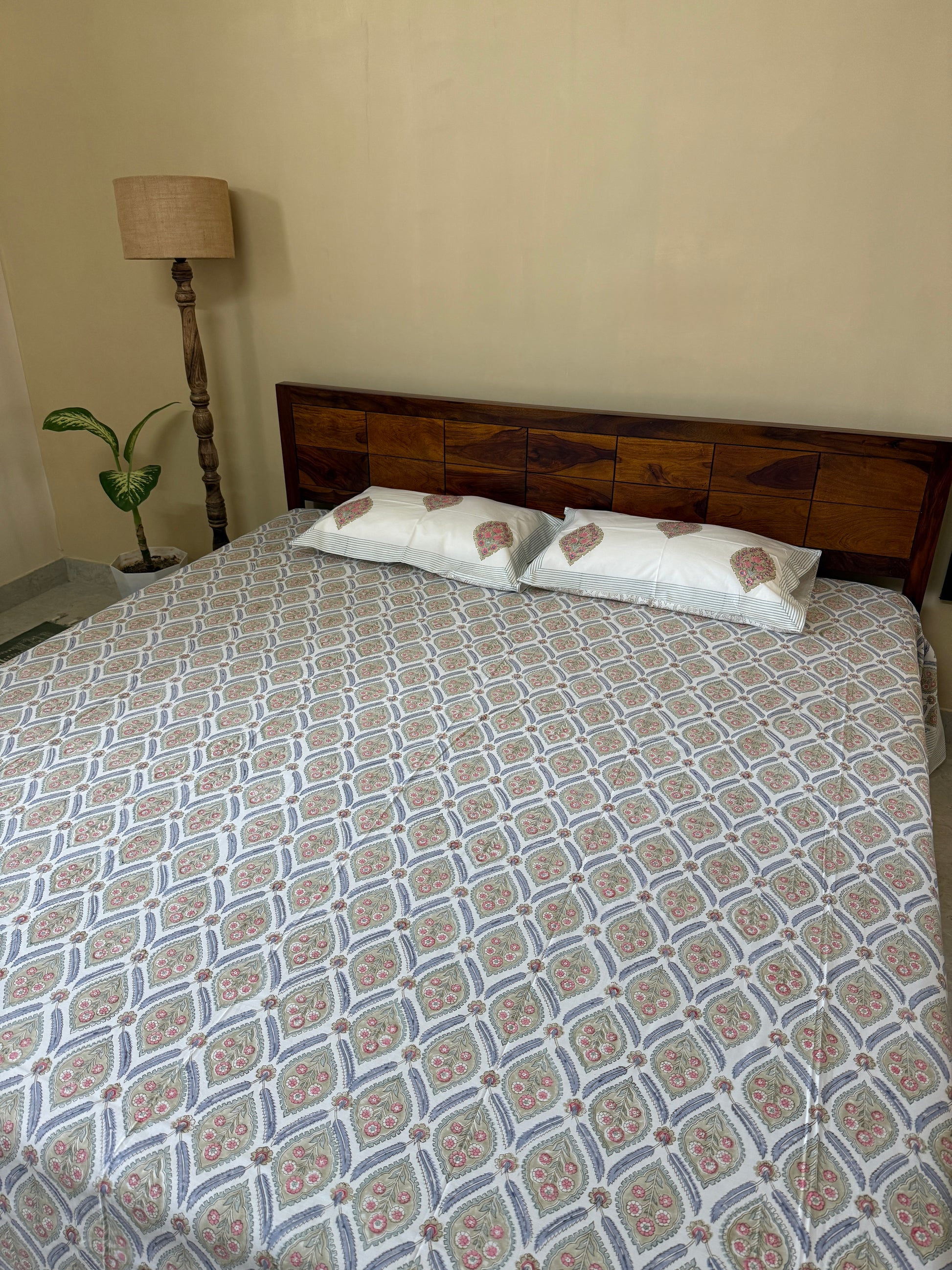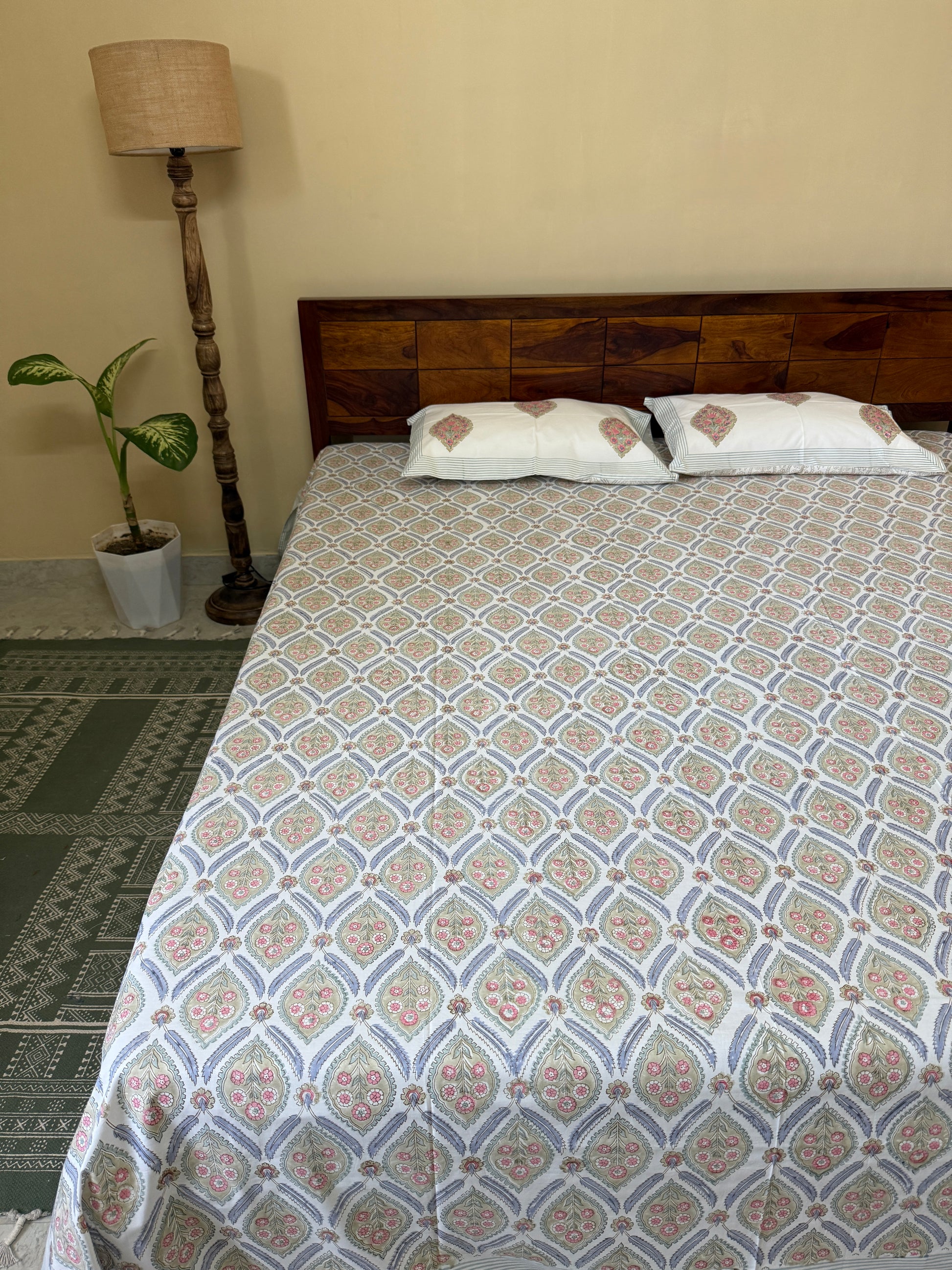 Heritage Medley HandBlock King Size Bedsheet with 2 Pillow Covers (108”*108”)