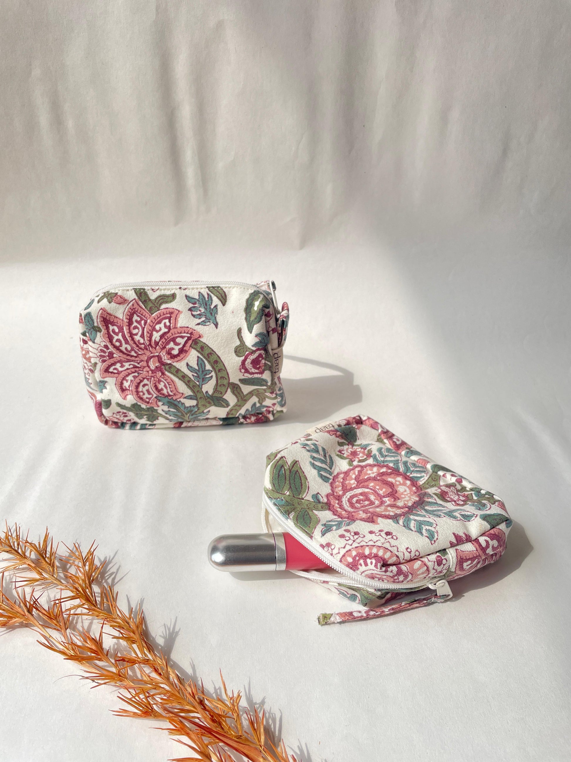 Multicolour Floral Cotton Canvas Small Pouch – Petite, Pretty, and Purposeful
