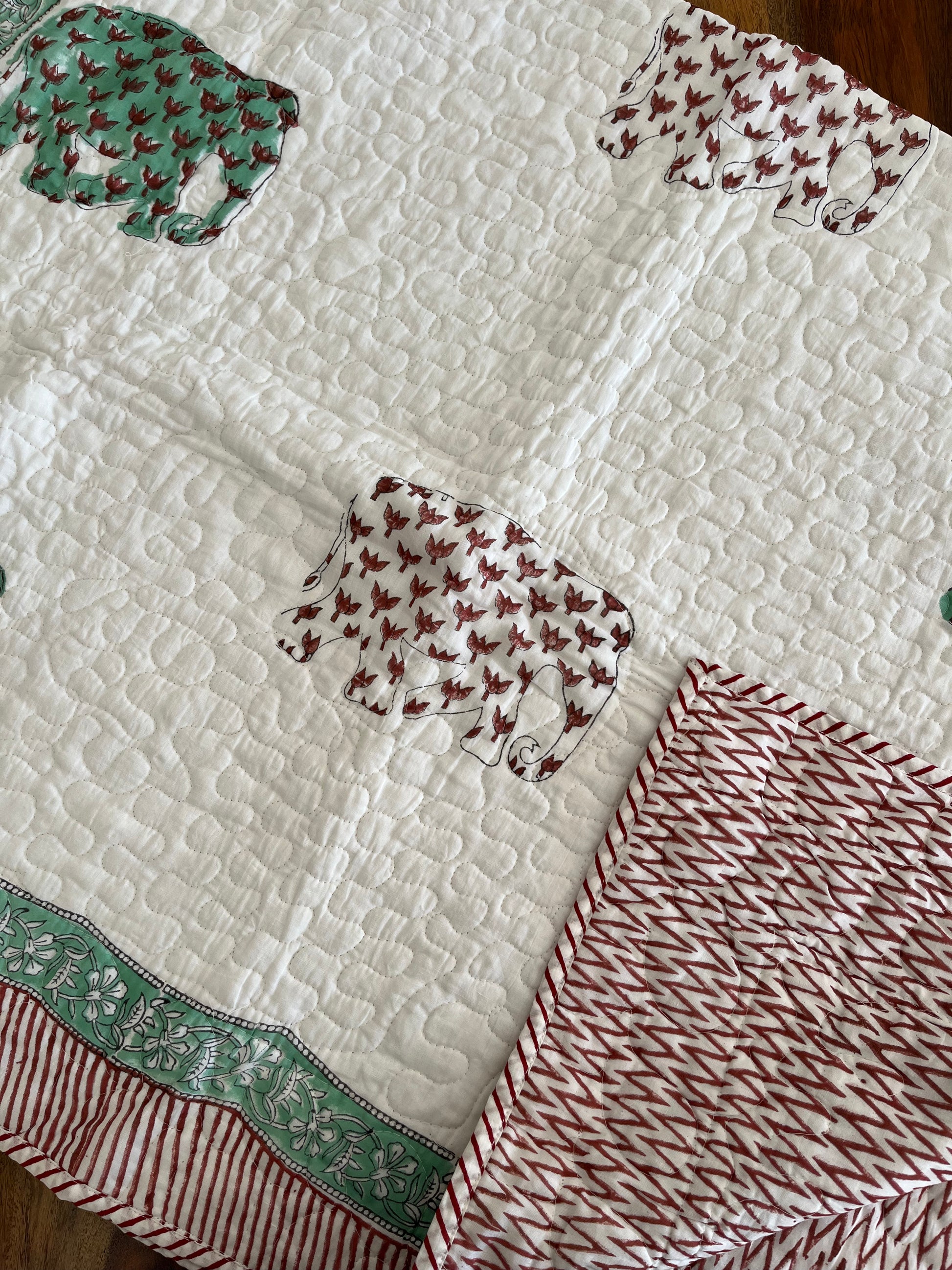 Wrap your little one in the gentle warmth of our Hand Block Printed Baby Quilt, crafted with love and care to ensure comfort and safety for your baby. Made from the softest mulmul cotton, this quilt features charming hand-block prints that add a splash of cute colors to your nursery.
