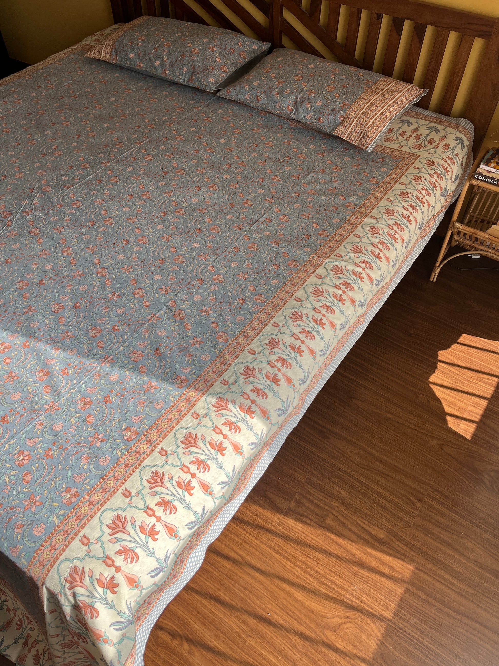 Misty Morning Bloom Cotton Queen Size Bedsheet with 2 Pillow Covers (90”*108”)