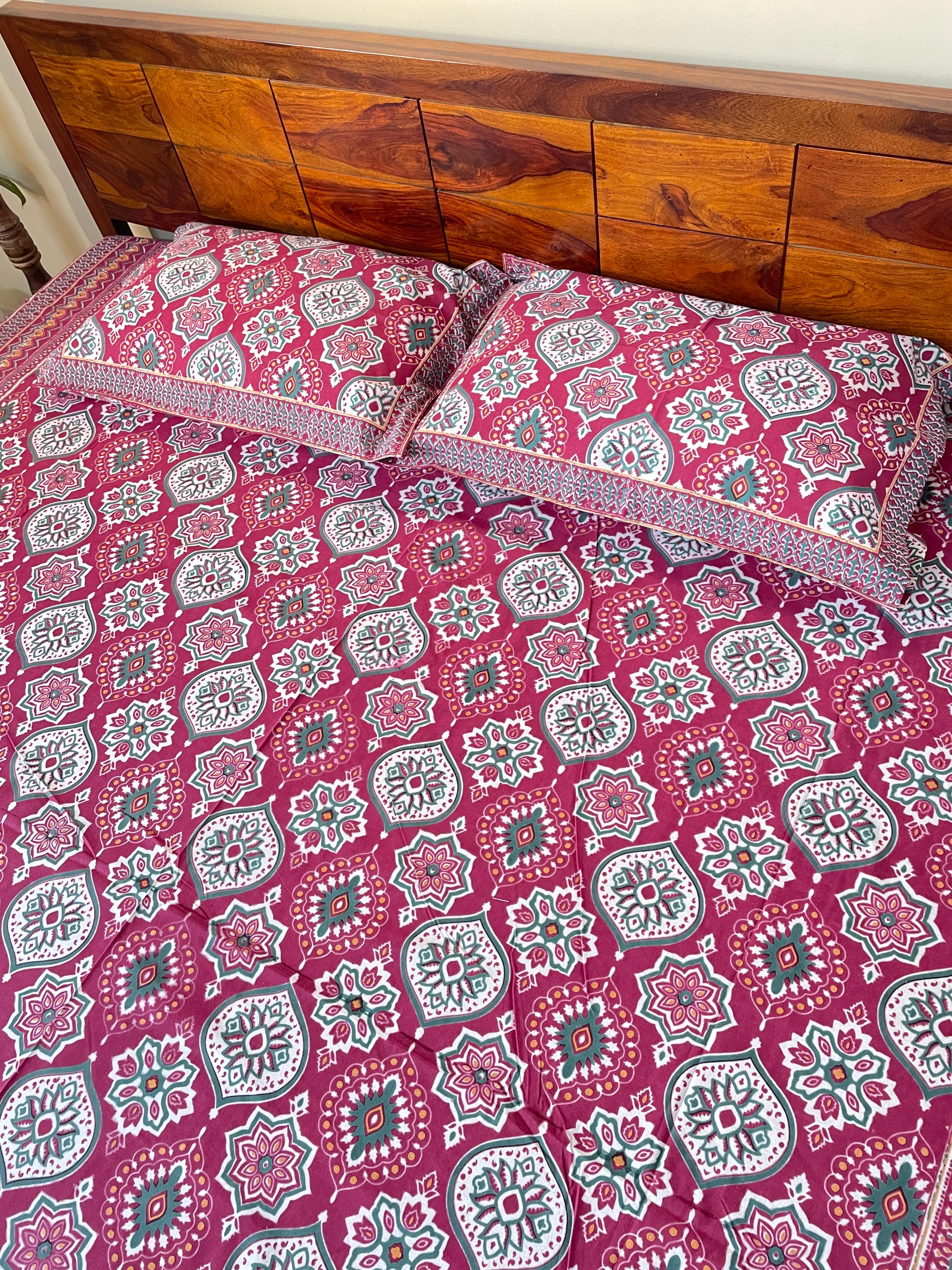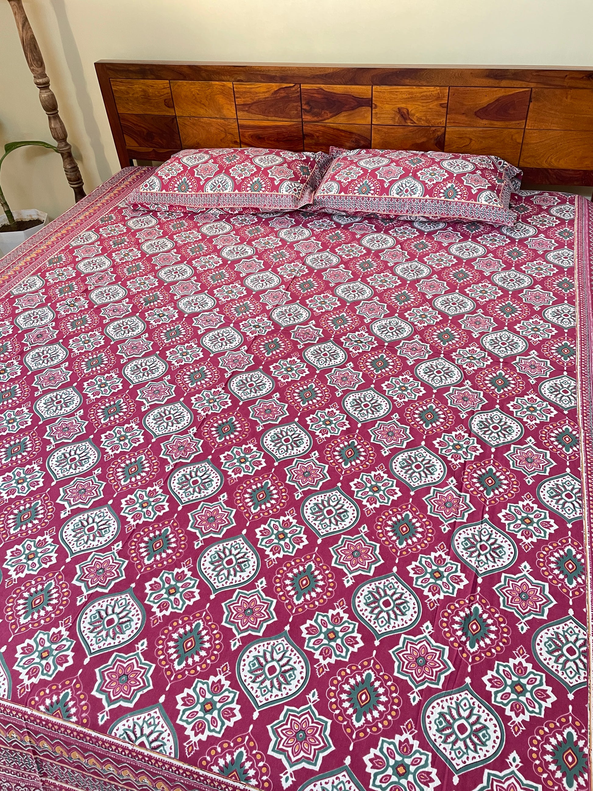Magenta Traditional Cotton Queen Size Bedsheet with 2 Pillow Covers (90”*108”)
