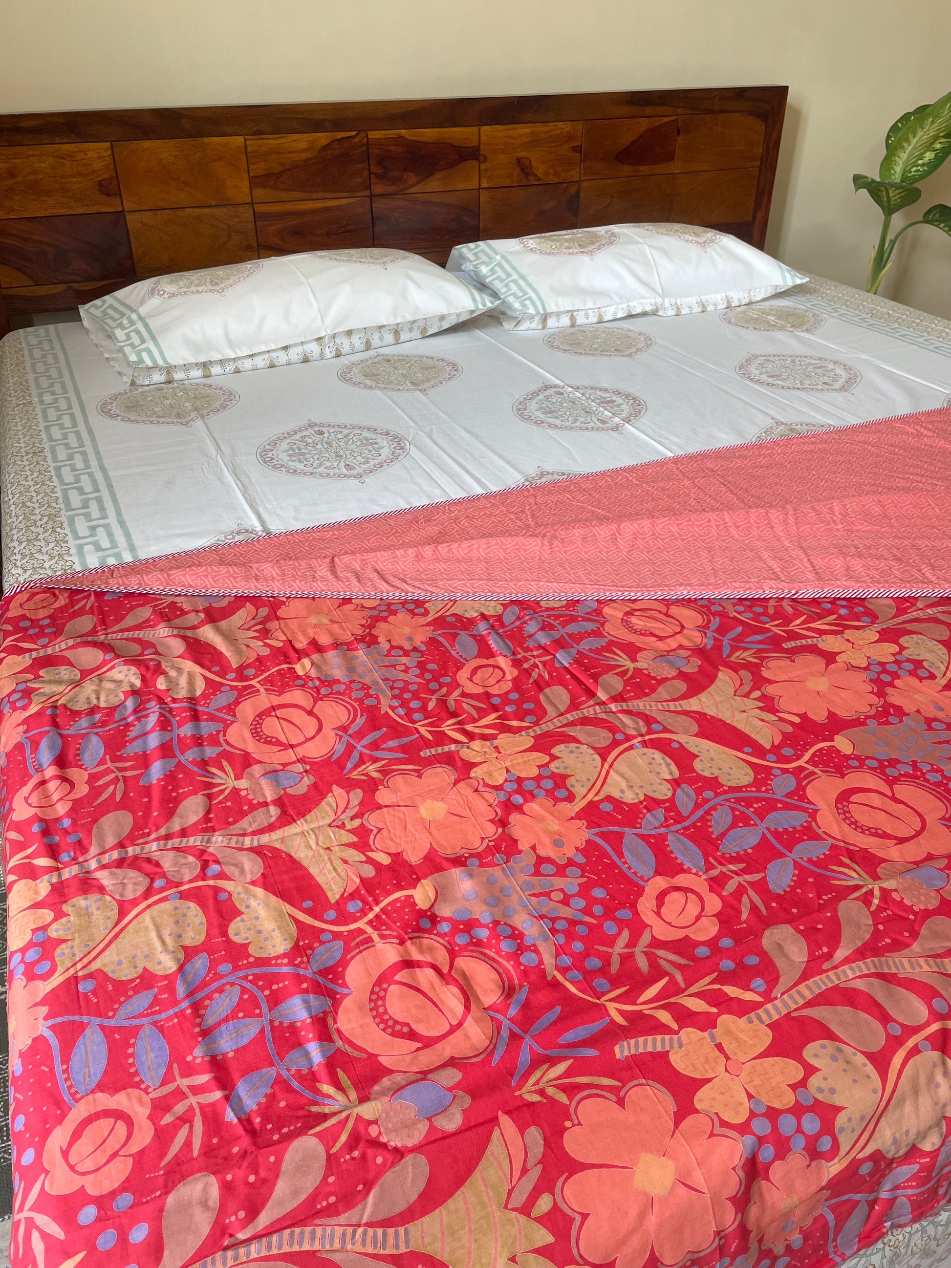 • Vibrant Screen Prints: Featuring intricate, bold patterns, the dohar adds a striking element to any room, instantly upgrading your bedroom’s look.
