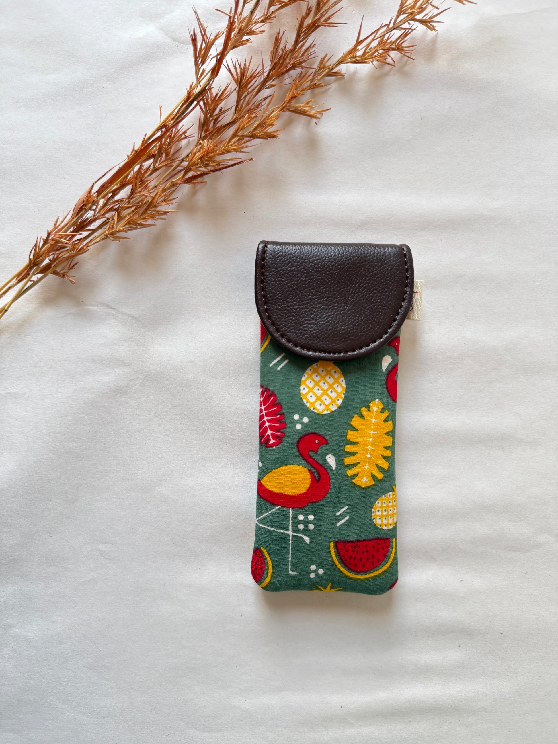 > Crafted in colorful or earthy cotton prints, making even a sunglass cover a style