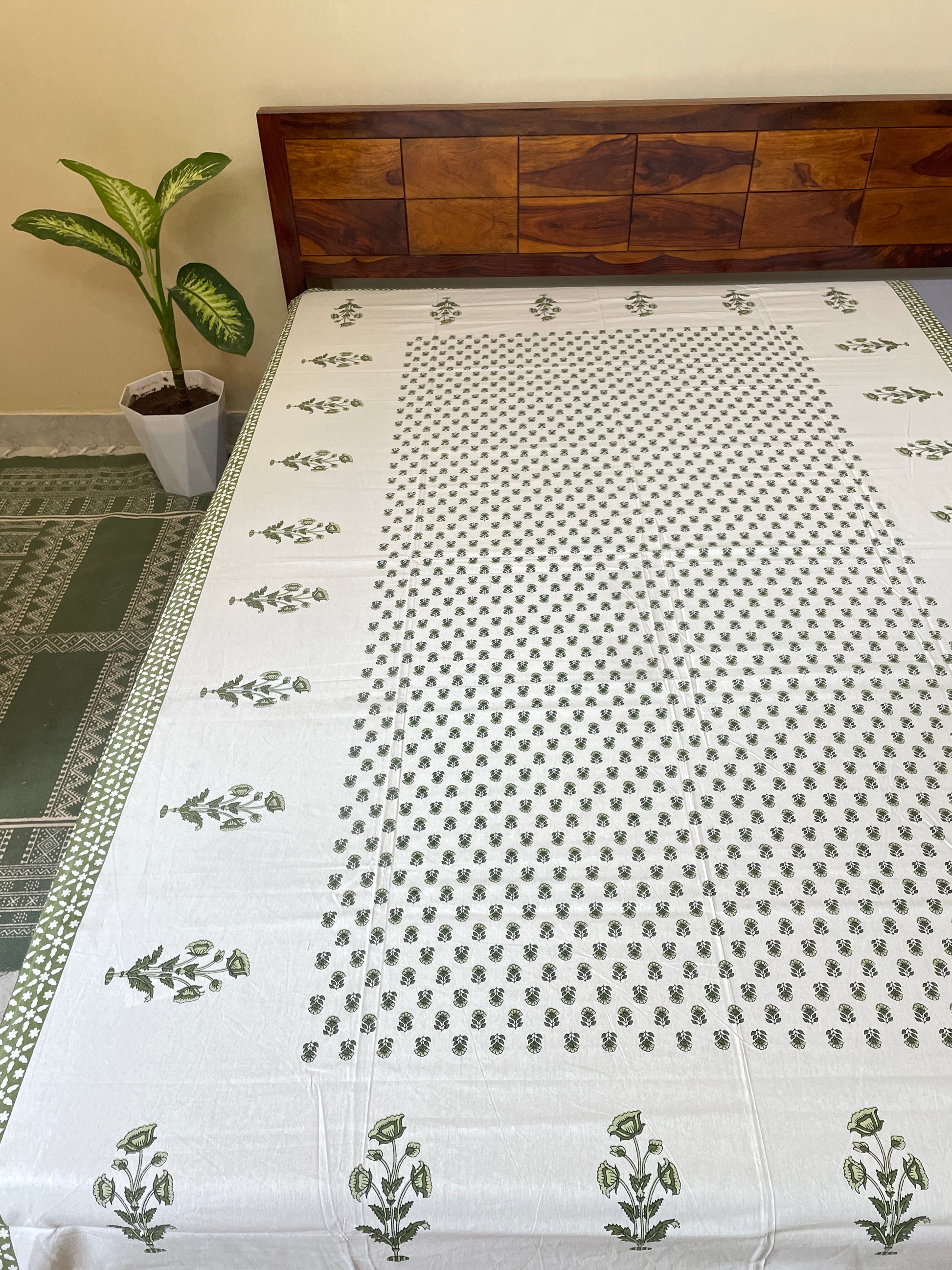 • Artisanal Quality: Each bedsheet is printed by artisans, ensuring that every piece is unique and finely made.