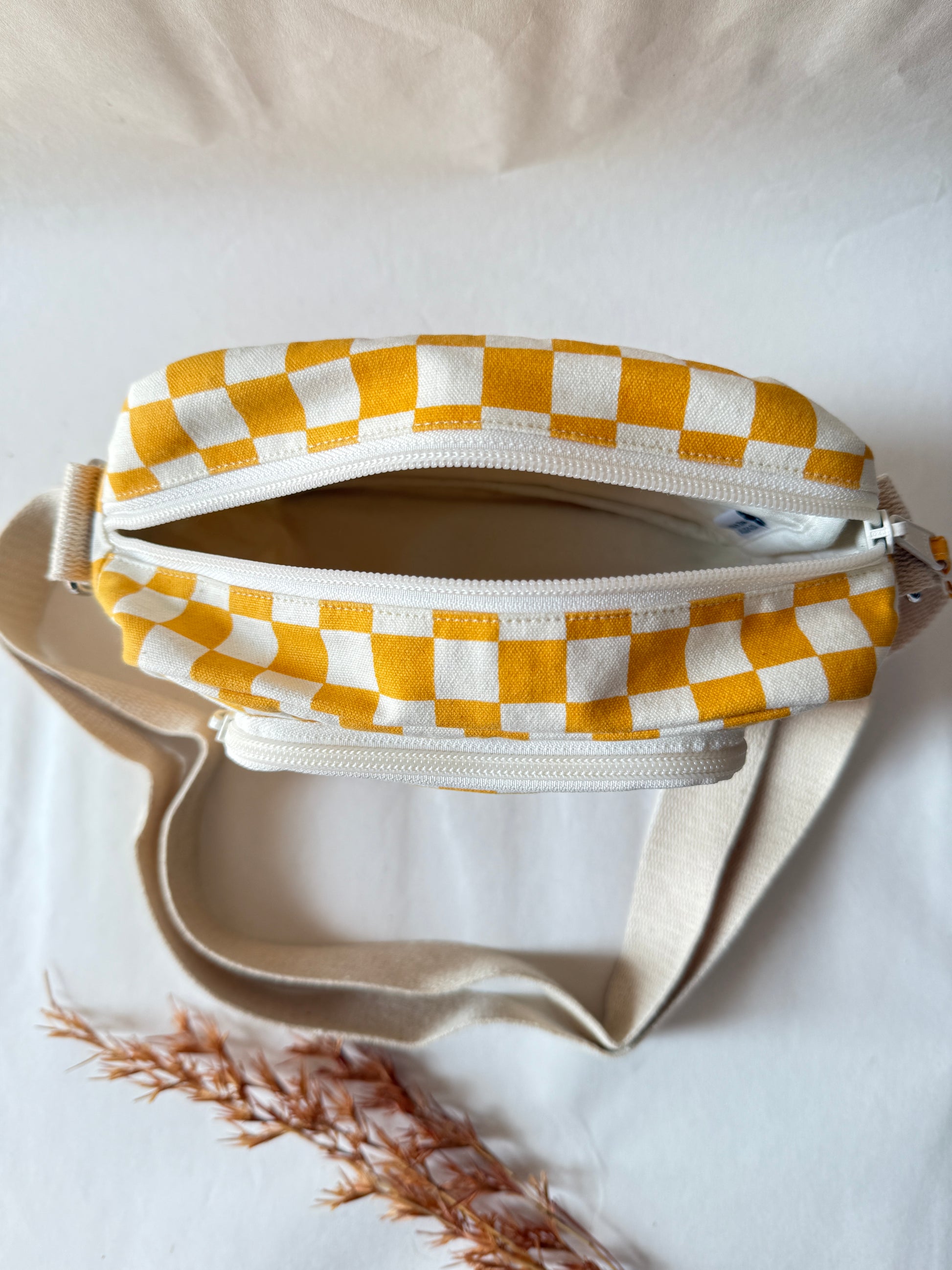 Yellow Checkered Cotton Canvas Multi-pocket Crossbody Sling – Travel Light, Stay Stylish